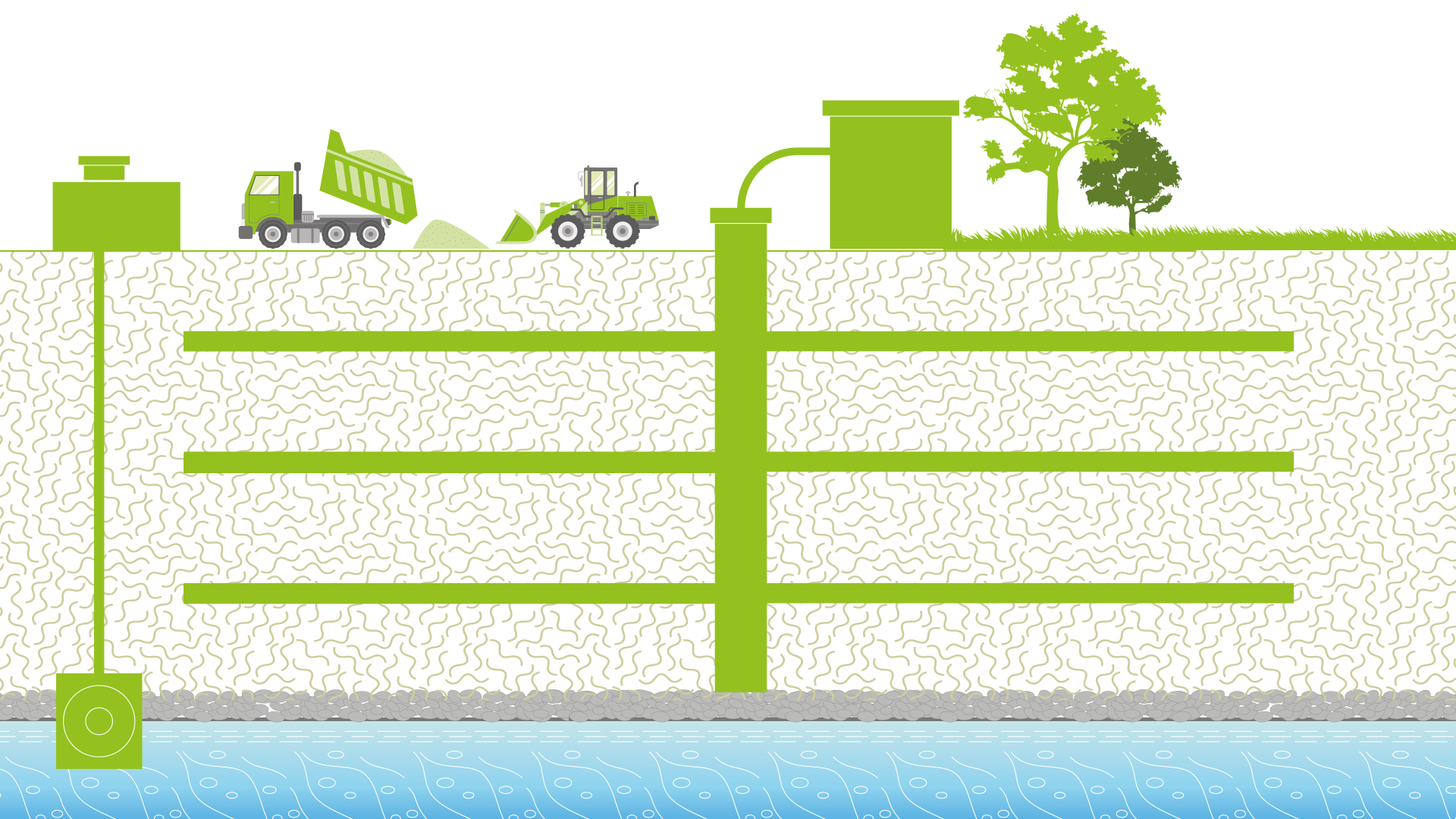 Al fine di garantire il completo isolamento delle acque profonde, vengono isolati il fondo dell’invaso e le sponde dello scavo con materiali impermeabili.