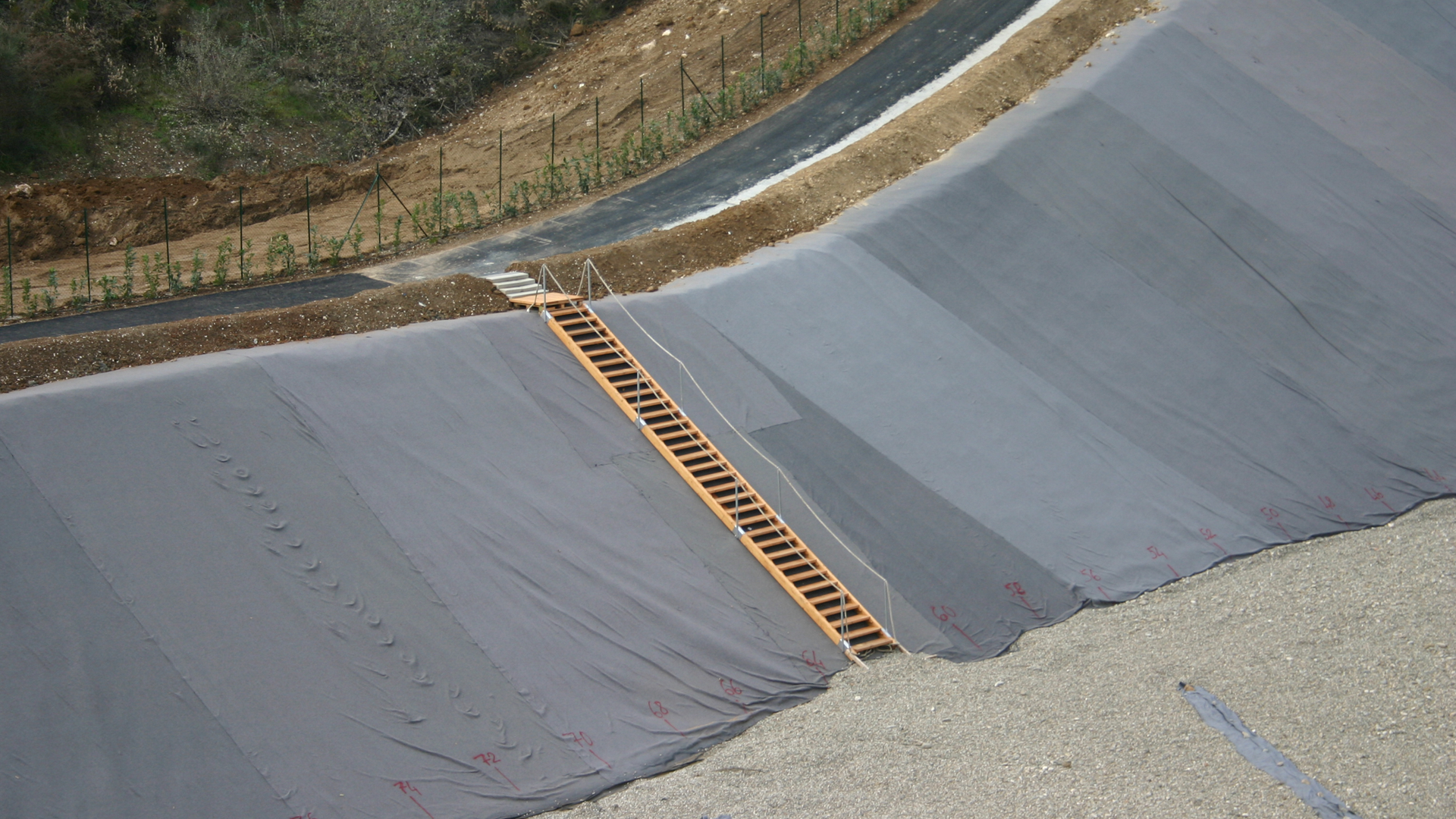 La scala di accesso all’invaso, posta per non danneggiare la copertura durante le ispezioni al sistema di drenaggio.