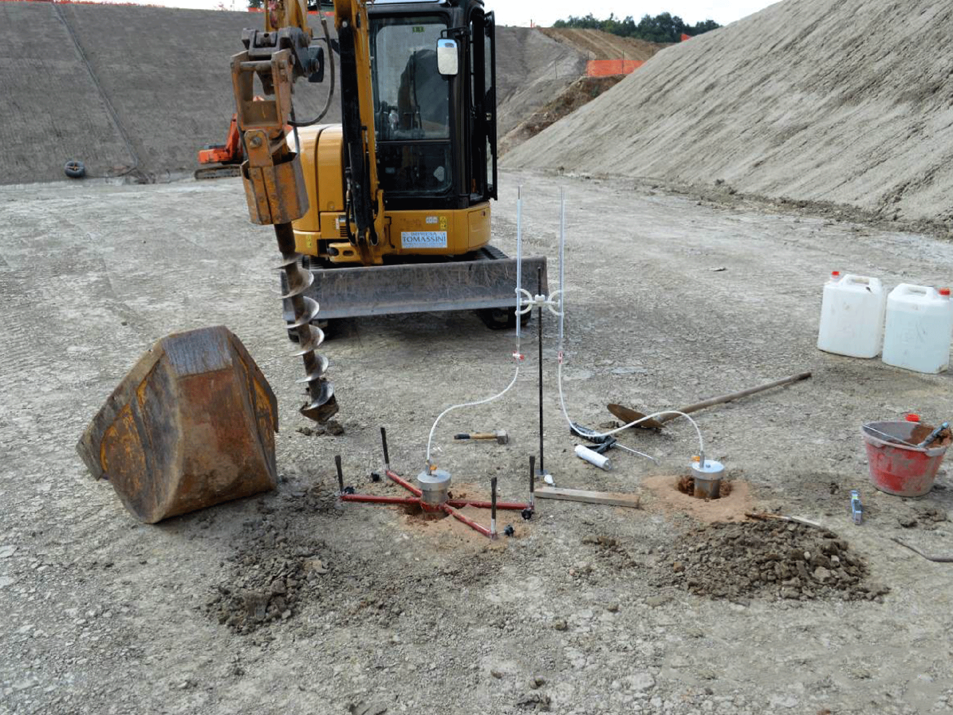 Il fondo dell’invaso viene testato per determinare la permeabilità e il conseguente grado di isolamento conferito dalle argille.