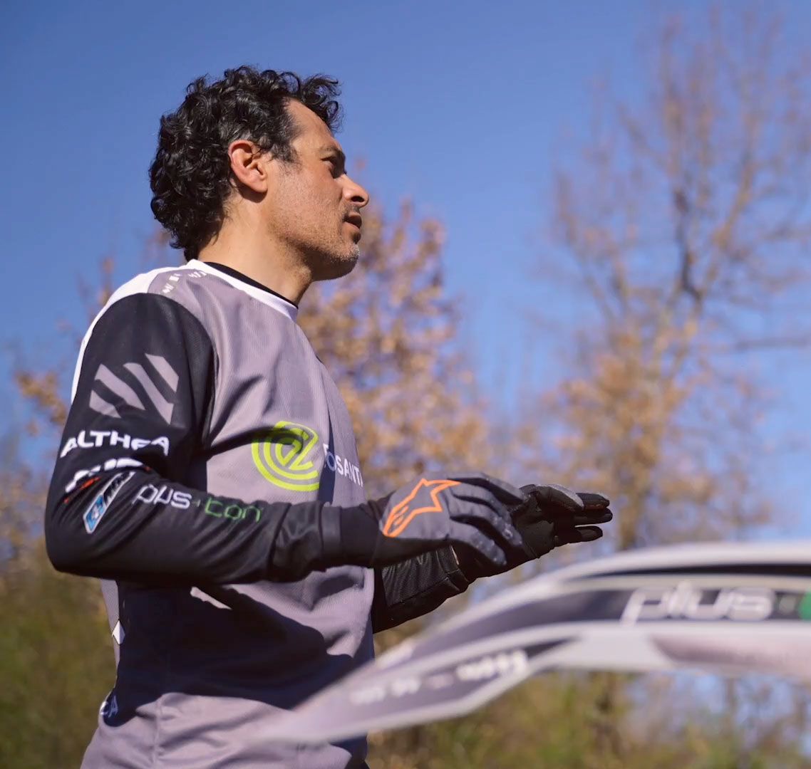 Non lasciatevi ingannare dal suo carattere tranquillo e cordiale! Nel suo DNA ci sono anni di esperienza e di agonismo nel mondo delle 2 ruote, ciclismo su strada, moto da pista, enduro in moto e, ovviamente, mountain bike!