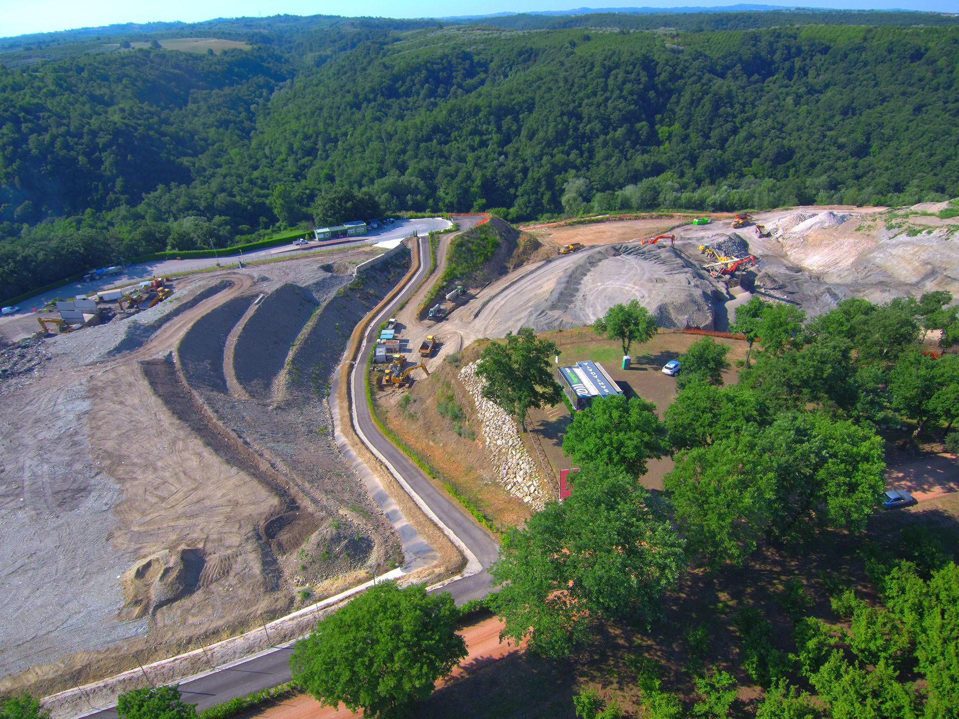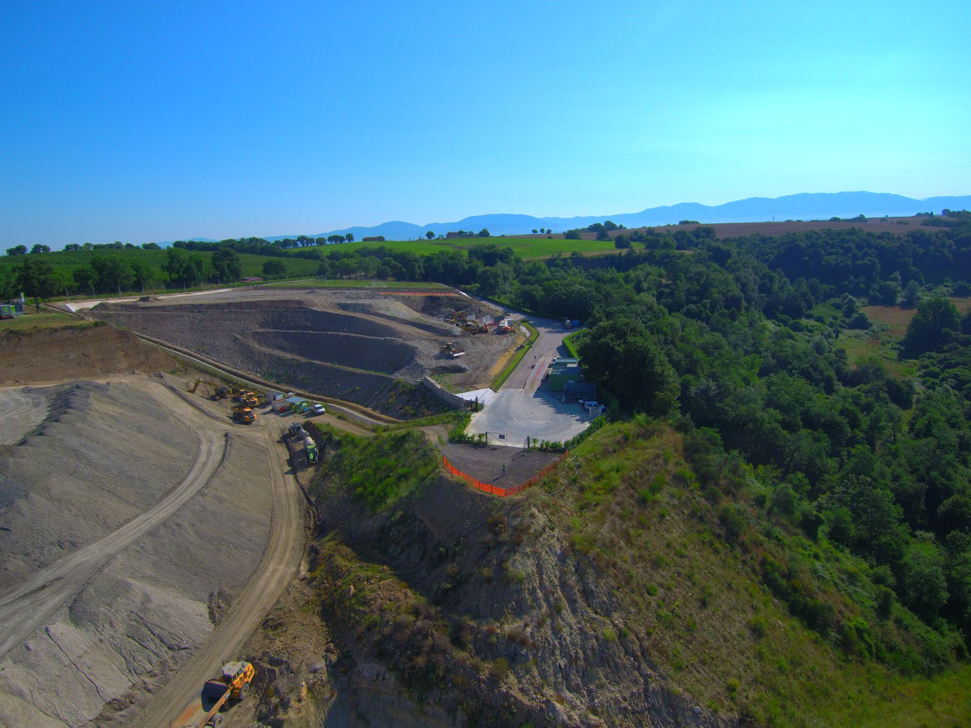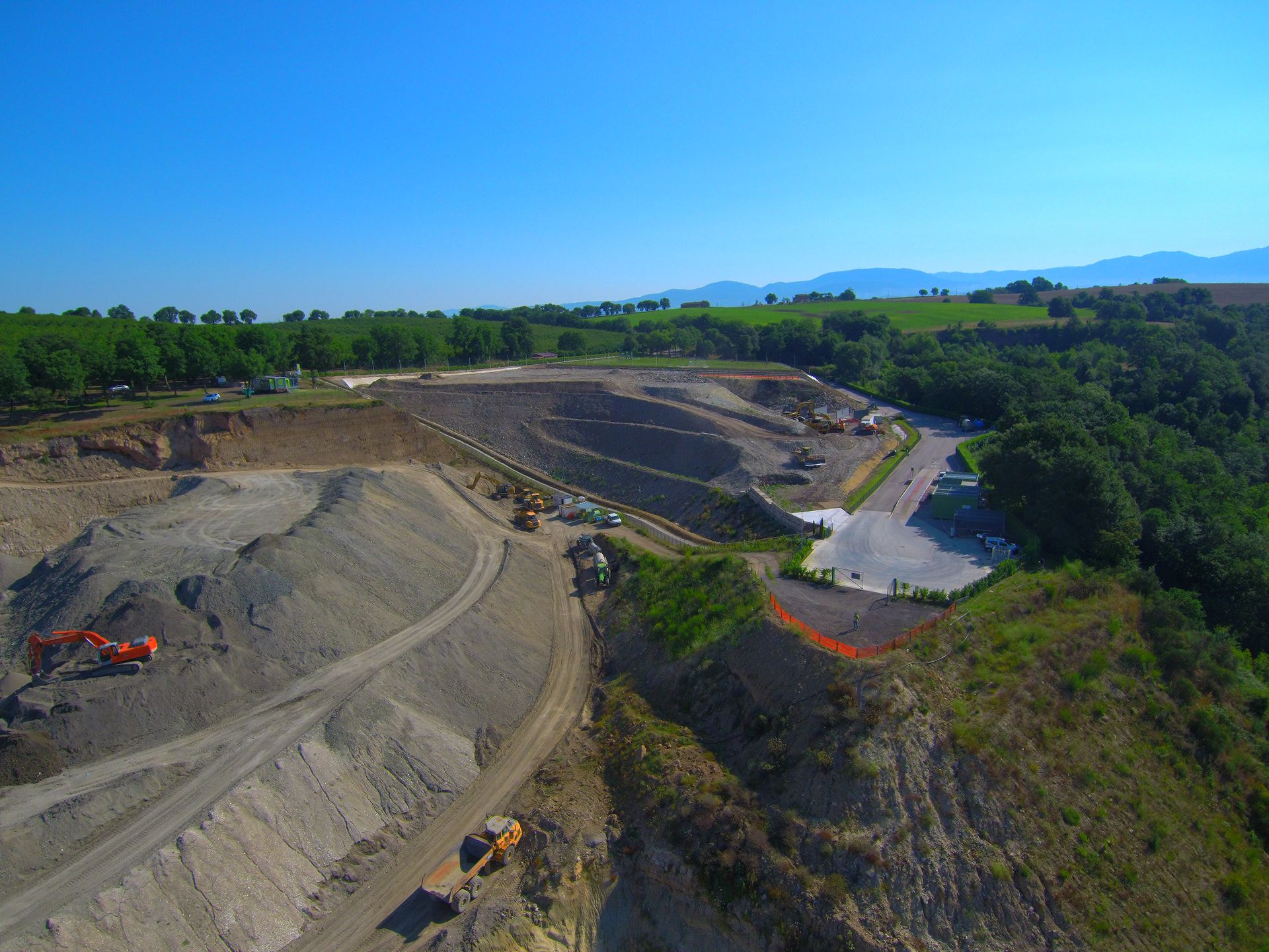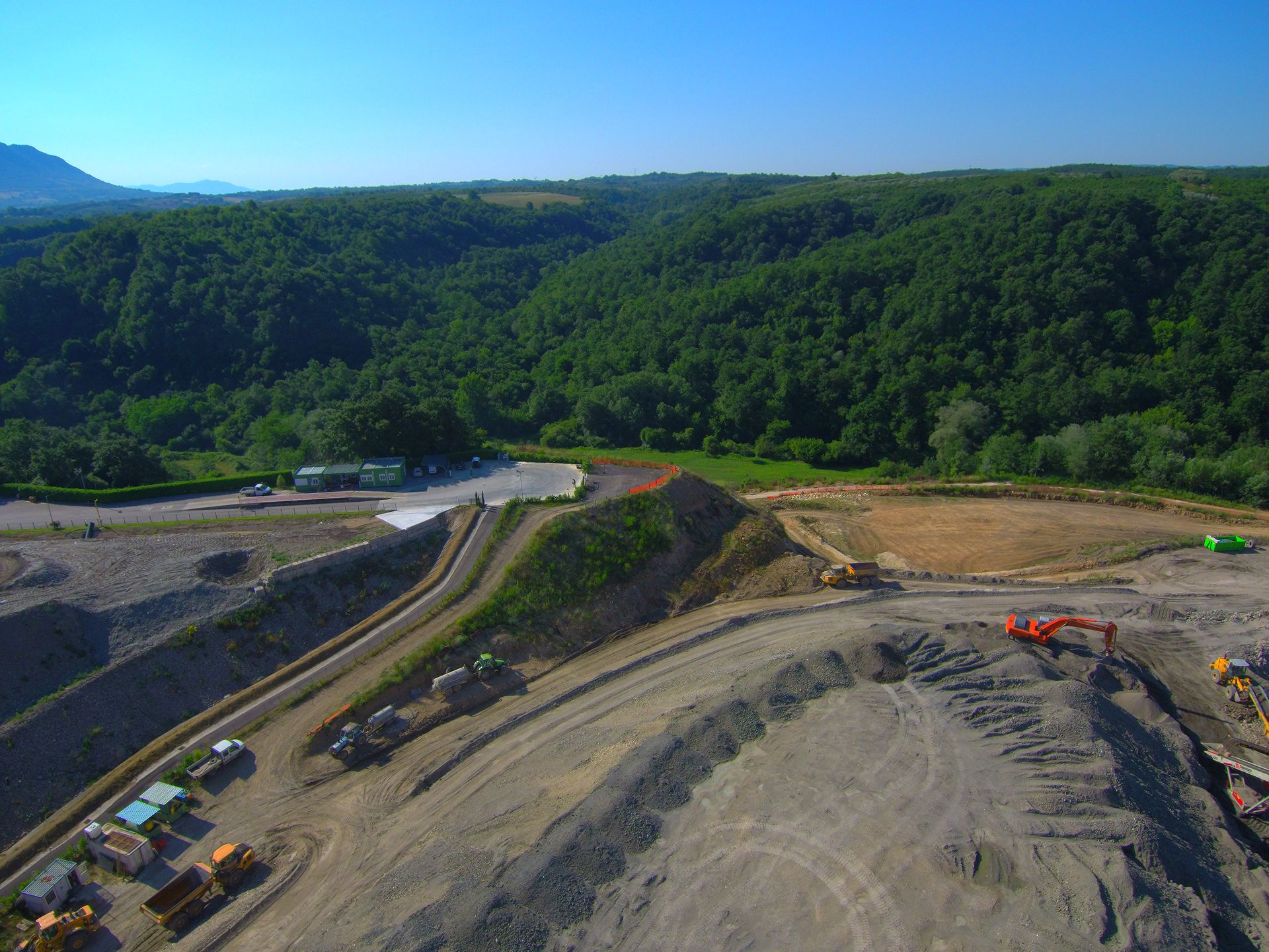 Volo drone sull’area dell’impianto. Nelle immagini recupero e vagliatura degli inerti gessosi nell’area interessata al progetto di Landfill Mining, e attività quotidiane nei lotti in esercizio e reinverdimento.