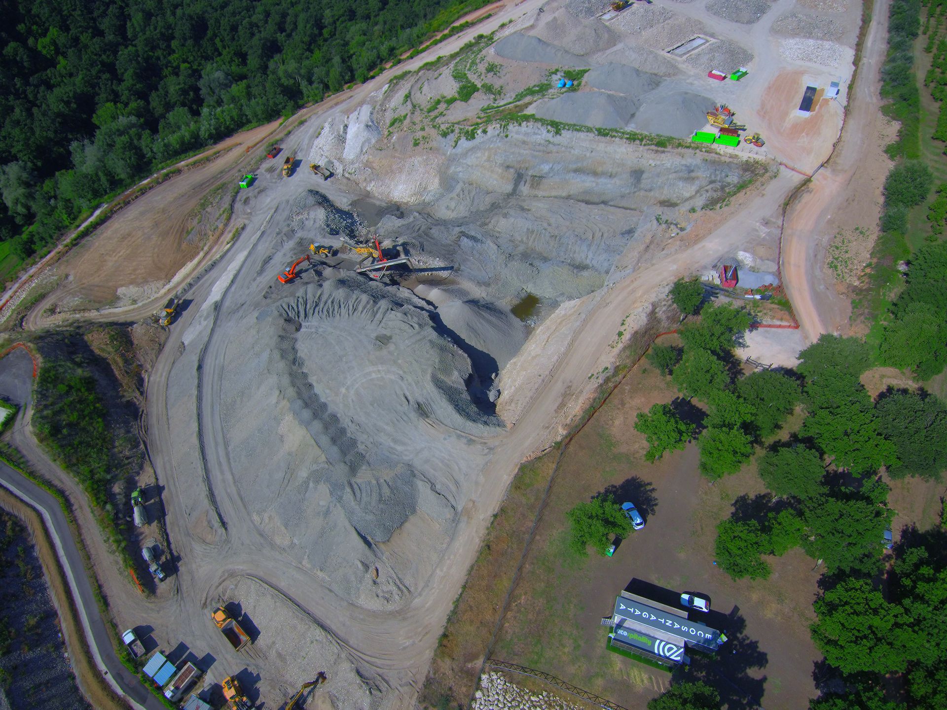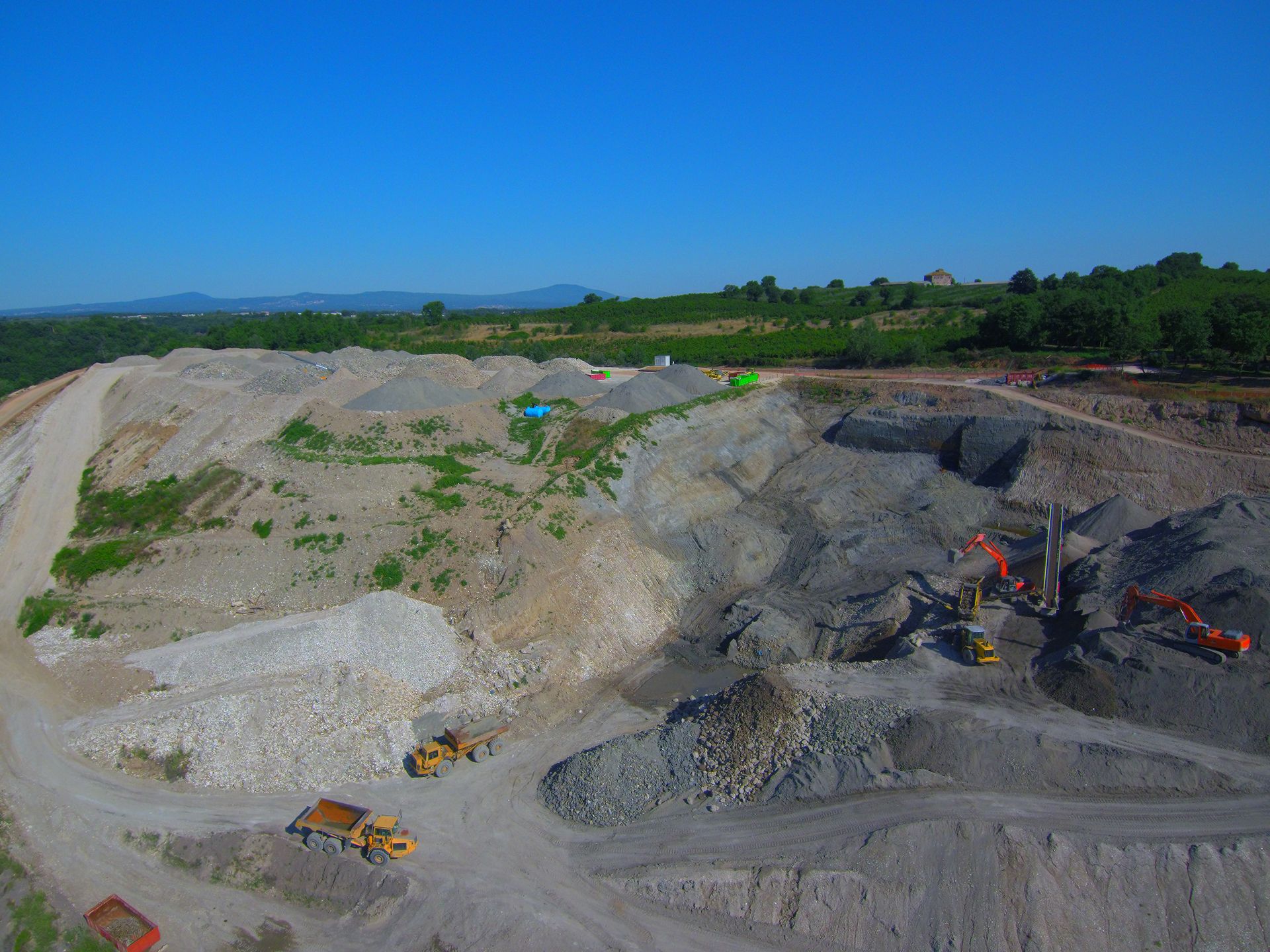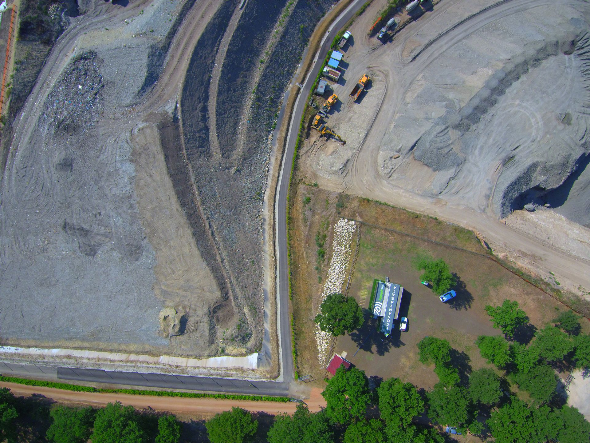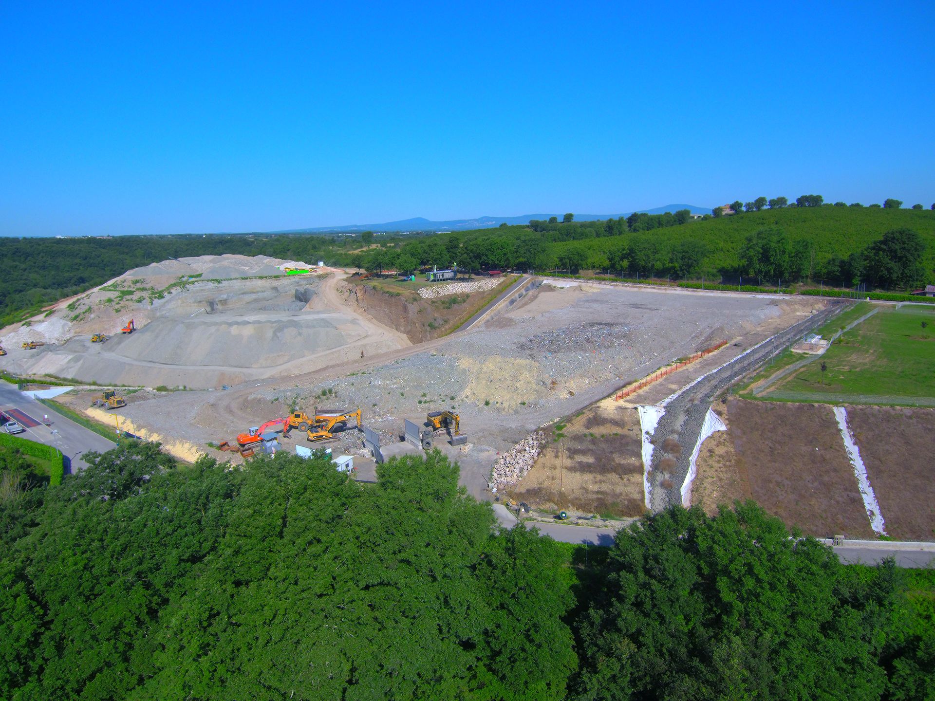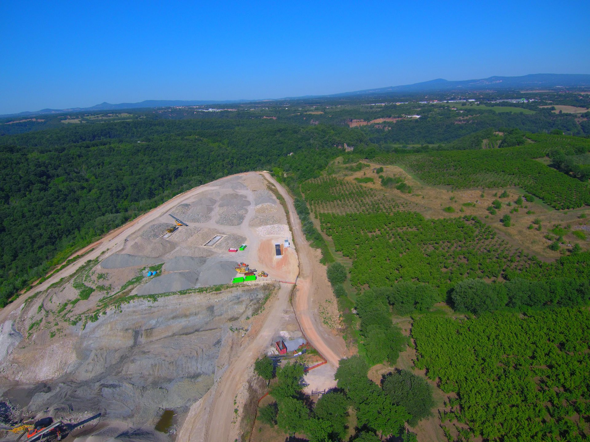 Volo drone sull’area dell’impianto. Nelle immagini recupero e vagliatura degli inerti gessosi nell’area interessata al progetto di Landfill Mining, e attività quotidiane nei lotti in esercizio e reinverdimento.