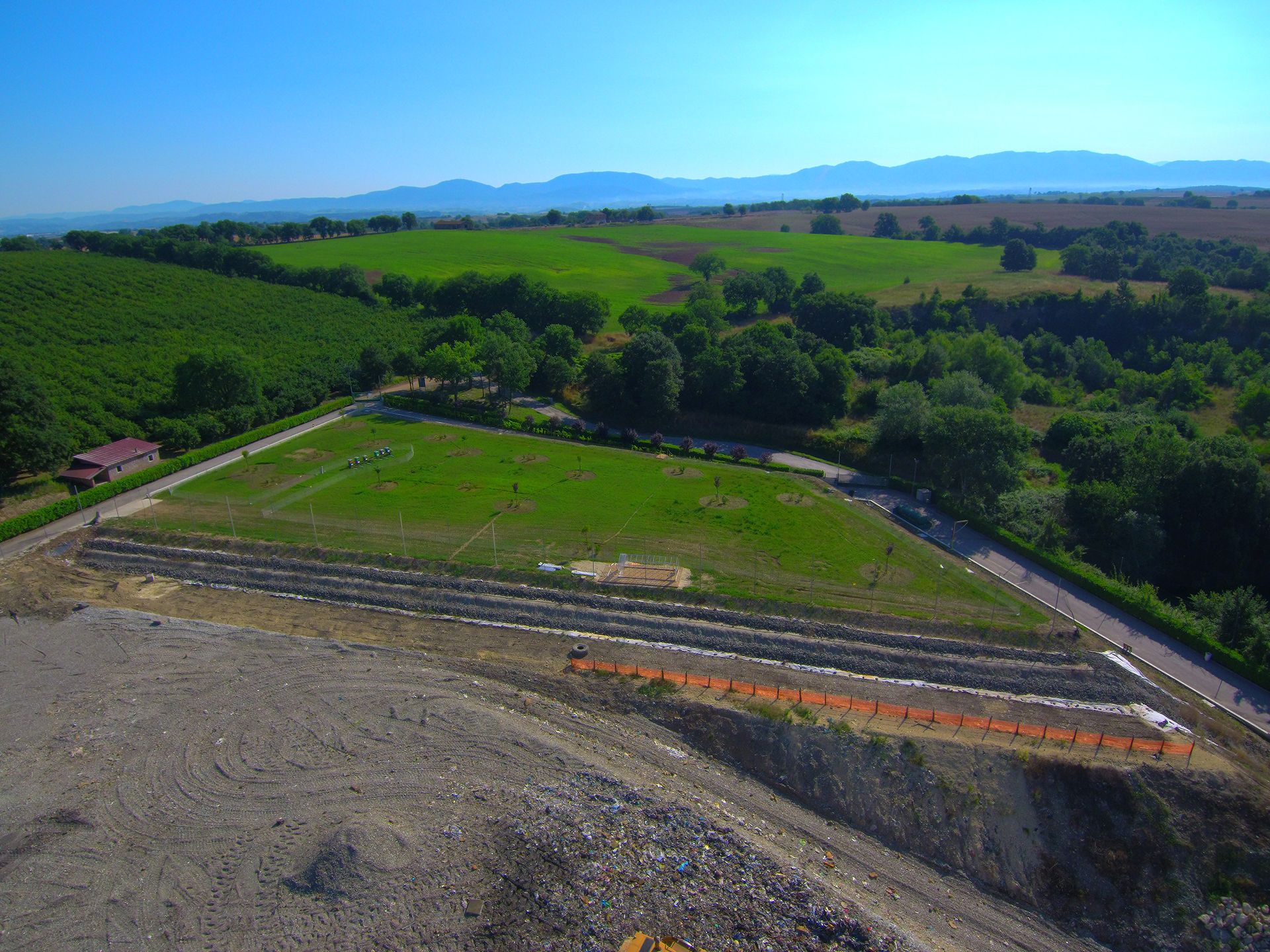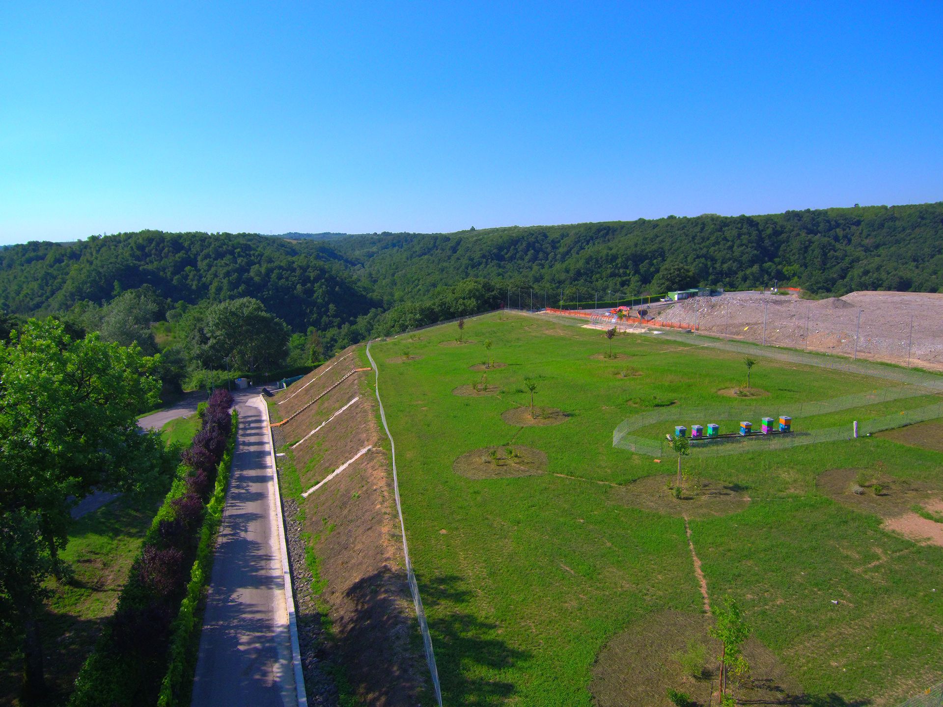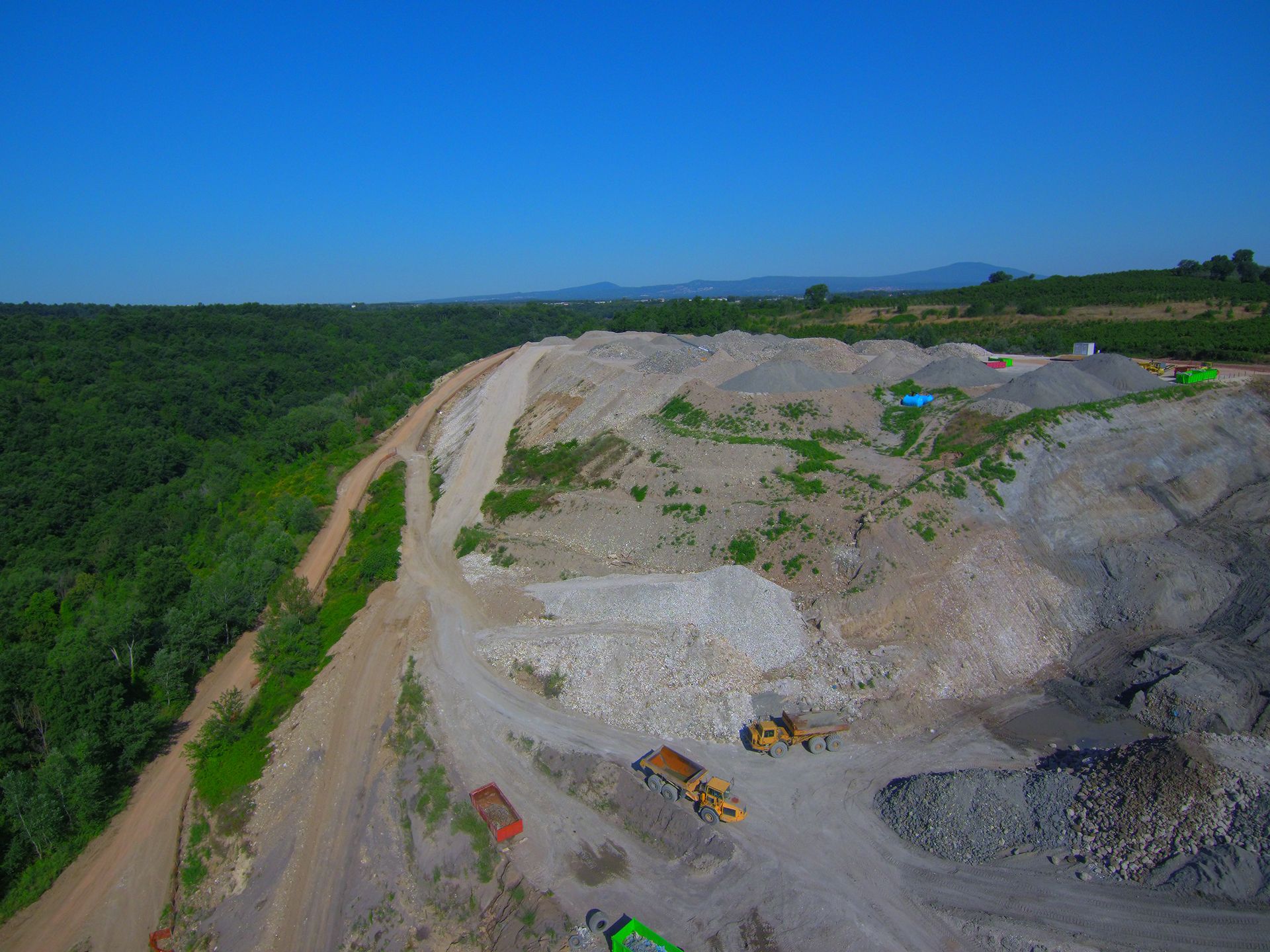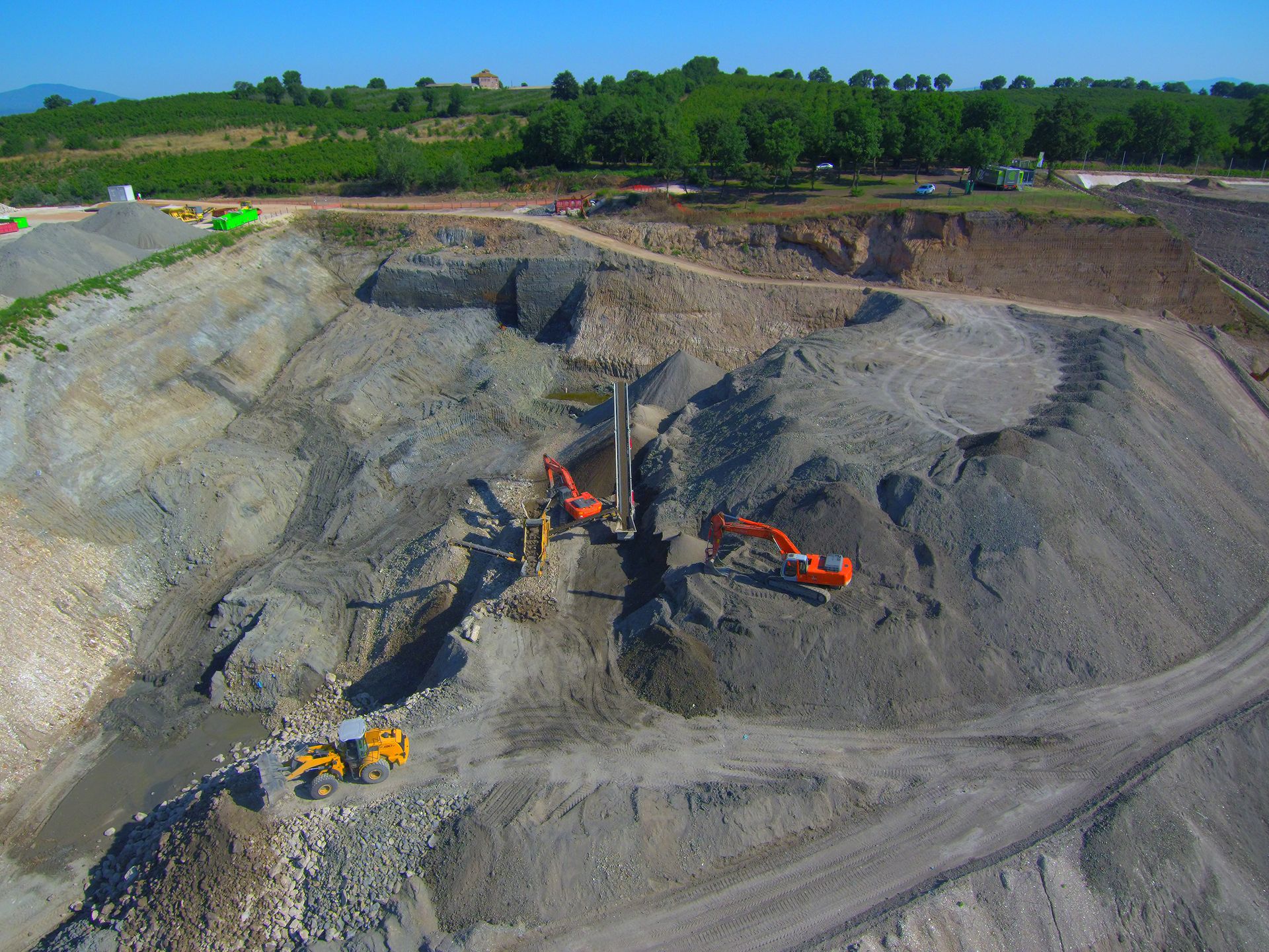 Volo drone sull’area dell’impianto. Nelle immagini recupero e vagliatura degli inerti gessosi nell’area interessata al progetto di Landfill Mining, e attività quotidiane nei lotti in esercizio e reinverdimento.